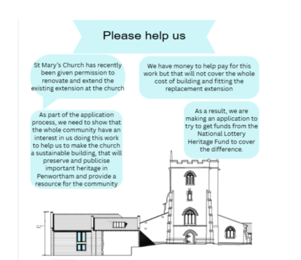 At the Vestry meeting, which forms the first part of the APCM and which is open to all residents of the parish of St. Mary, there will be a presentation about our building project and our current financial position. As we are seeking financial assistance from the Heritage Lottery Fund it is important that we seek the views and opinions of all the people in our parish and community. We encourage anyone from our parish to come along and see what our plans are and ask any questions about them. You will be most welcome.